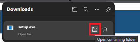 Klicka därefter på ”Open containing folder” för att öppna mappen som installationsprogrammet laddades ner till.