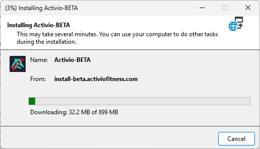 Börja med att ladda ner den senaste betaversionen av Activio-klienten via denna länk: https://install-beta.activiofitness.com/publish.htm